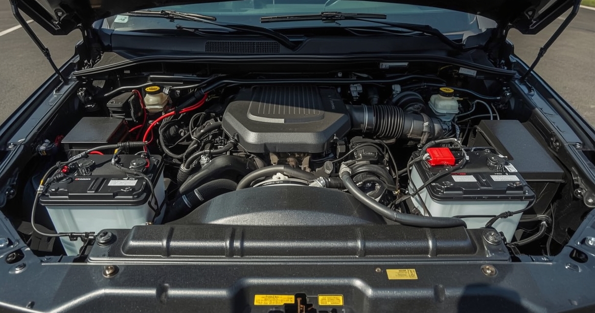 Dyzeliniuose sunkesnės klasės pikapuose dviejų akumuliatorių sistema beveik visada sujungta lygiagrečiai. Tokiu atveju įtampa nesikeičia, o padidėja bendra srovė. Pavyzdžiui, du 12 V ir 600 A akumuliatoriai kartu sudaro 12 V sistemą, kuri gali atiduoti apie 1200 A. Būtent to ir siekiama užvedant dyzelinį variklį. Jei akumuliatoriai būtų sujungti nuosekliai, rezultatas būtų 24 V ir 600 A – toks sprendimas daugumai lengvųjų automobilių elektros sistemų nėra naudingas.