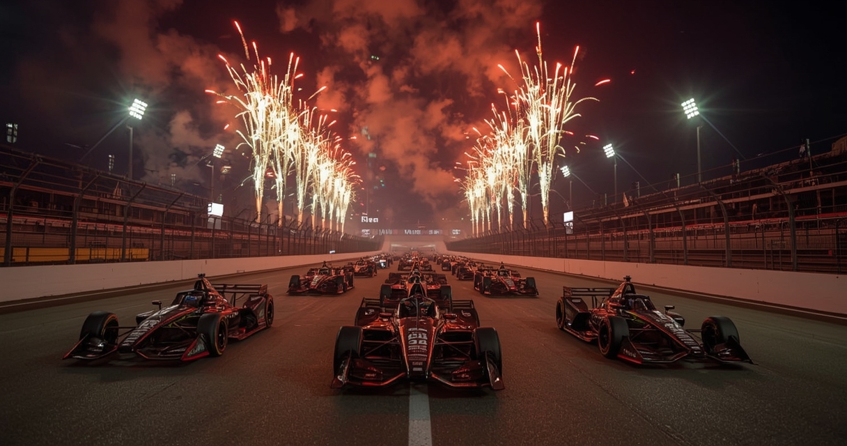 IndyCar lenktynės Pasaulinės technologijos trasoje buvo pradėtos itin triukšmingai: dar prieš žalią vėliavą, automobiliams rikiuotėje važiuojant galine tiesiąja, virš trasos į naktinį dangų šovė didžiulis pirotechnikos šou. Iš keliasdešimties ugnies „patrankų“ į viršų veržėsi liepsnos, o pati įžanga labiau priminė kino filmams būdingą efektų sceną nei tradicinį sporto renginio startą. Šį kartą organizatoriai akivaizdžiai pakėlė kartelę, o maždaug 523 km distancijos lenktynės vėliau tą pažadą pateisino ir trasoje.