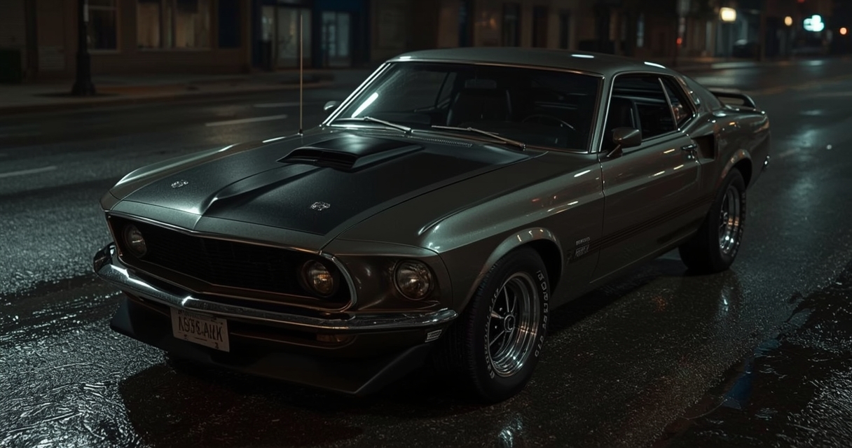 Tikėtina, kad ekrane matomas automobilis – 1969 metų „Mustang Mach 1“. Šis modelis buvo populiarus sportiškas sprendimas su įvairiais išvaizdos ir našumo paketais. Tokį automobilį įsigyti penkiais egzemplioriais nebuvo sudėtinga net ir riboto biudžeto filmo komandai. „Mach 1“ atpažįstamas pagal iškilų, tačiau mažesnį kapoto oro įsiurbimo gaubtą, sportinius laikiklius priekyje, aukštas sėdynes ir kapoto užraktus.